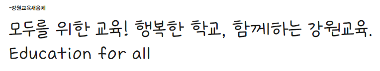 - 강원교육서체 저작권 안내강원교육서체는 누구나 무료로 다운로드 받아 자유롭게 사용 가능합니다.(출처 표기 권장)