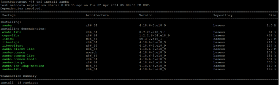 Apr 02 17:13:47 document smbd[23118]: smbd version 4.18.6 started.