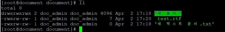 drwxrwxrwx. 3 root root 4096 Apr 2 16:57 document