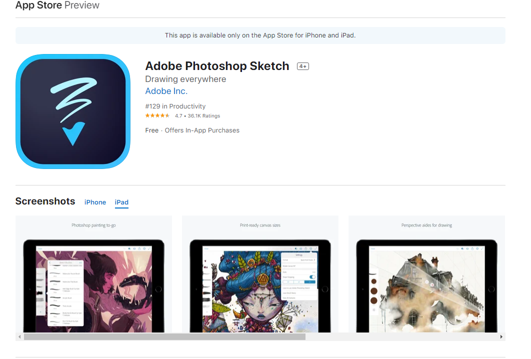 스케치 어플은 엄청 많지만, 공짜 어플 중에 Adobe Photoshop Sketch 선택.. 다른 이유는 없다. 맨 위에 있어서ㅎ