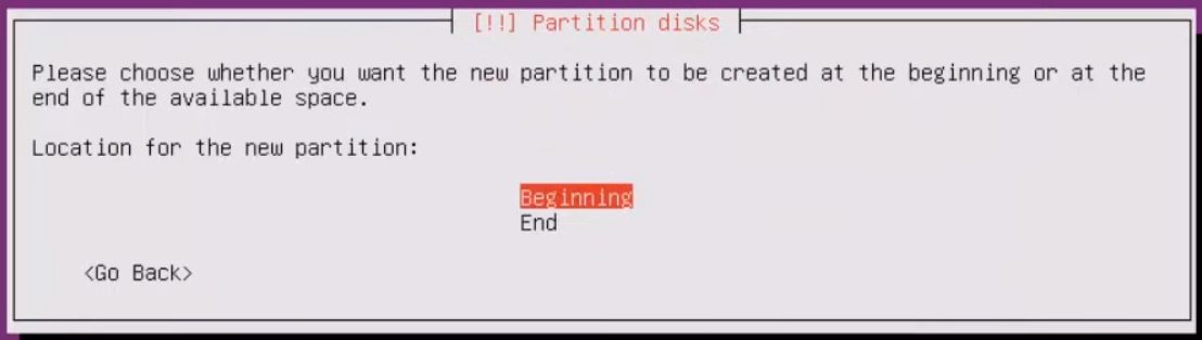 Location for the new partition : Beginning 선택