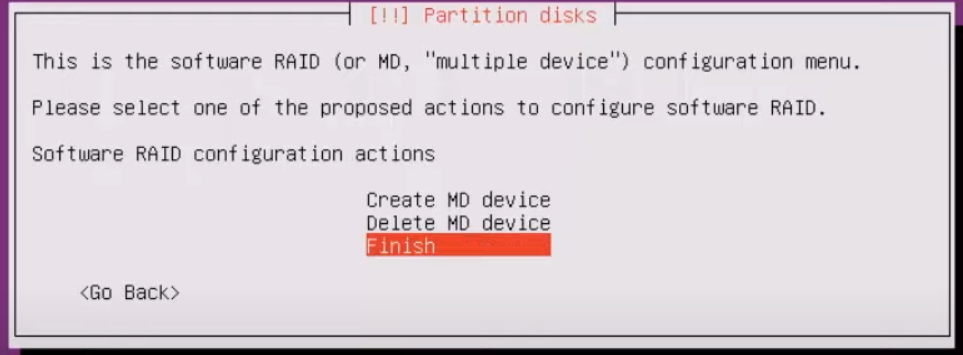 파티션 구성이 완료 되면 Configure software RAID 선택