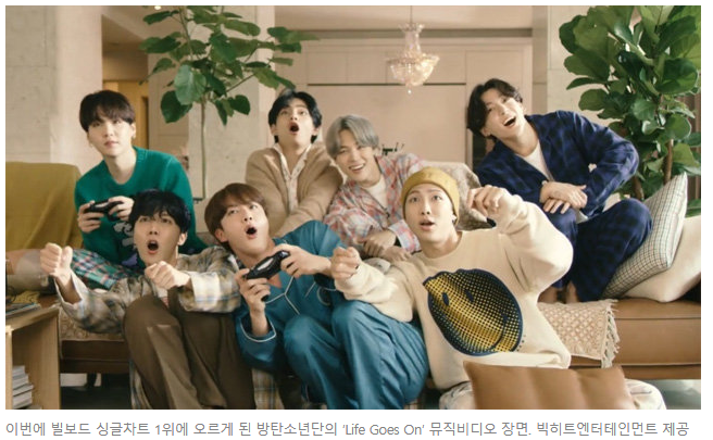 빌보드는 지난달 30일(현지 시간) 홈페이지 예고 기사를 통해 방탄소년단의 새 앨범 ‘BE’(11월 20일 발매)의 타이틀곡 ‘Life Goes On’이 5일자 빌보드 싱글차트 1위에 올랐다고 밝혔다.